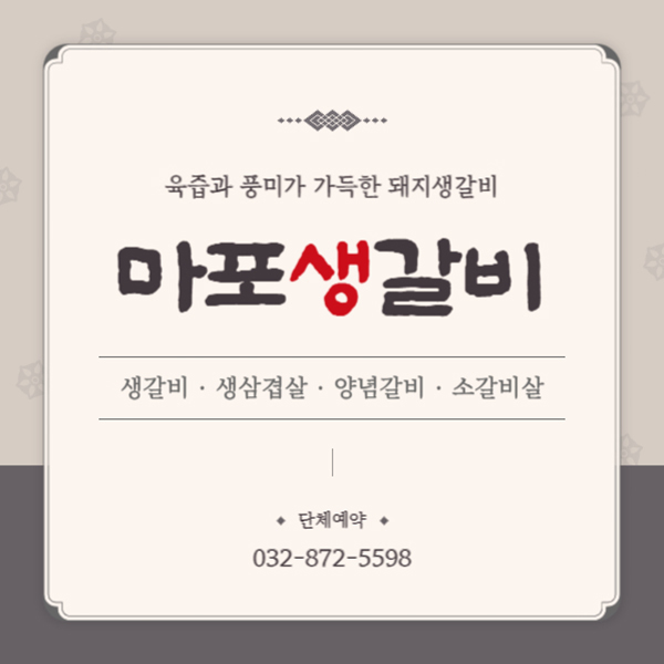 오랜 시간 한 자리를 지켜오면서 많은 분들에게 받아 온 사랑을 앞으로도 변함없는 맛과 친절한 서비스로 보답할 것을 약속드리며 언제나 좋은 재료로 최고의 맛을 선보이는 마포생갈비로 부담없이 방문하셔서 맛있는 고기 든든하게 드시고 행복한 시간 가져보시길 추천드립니다.